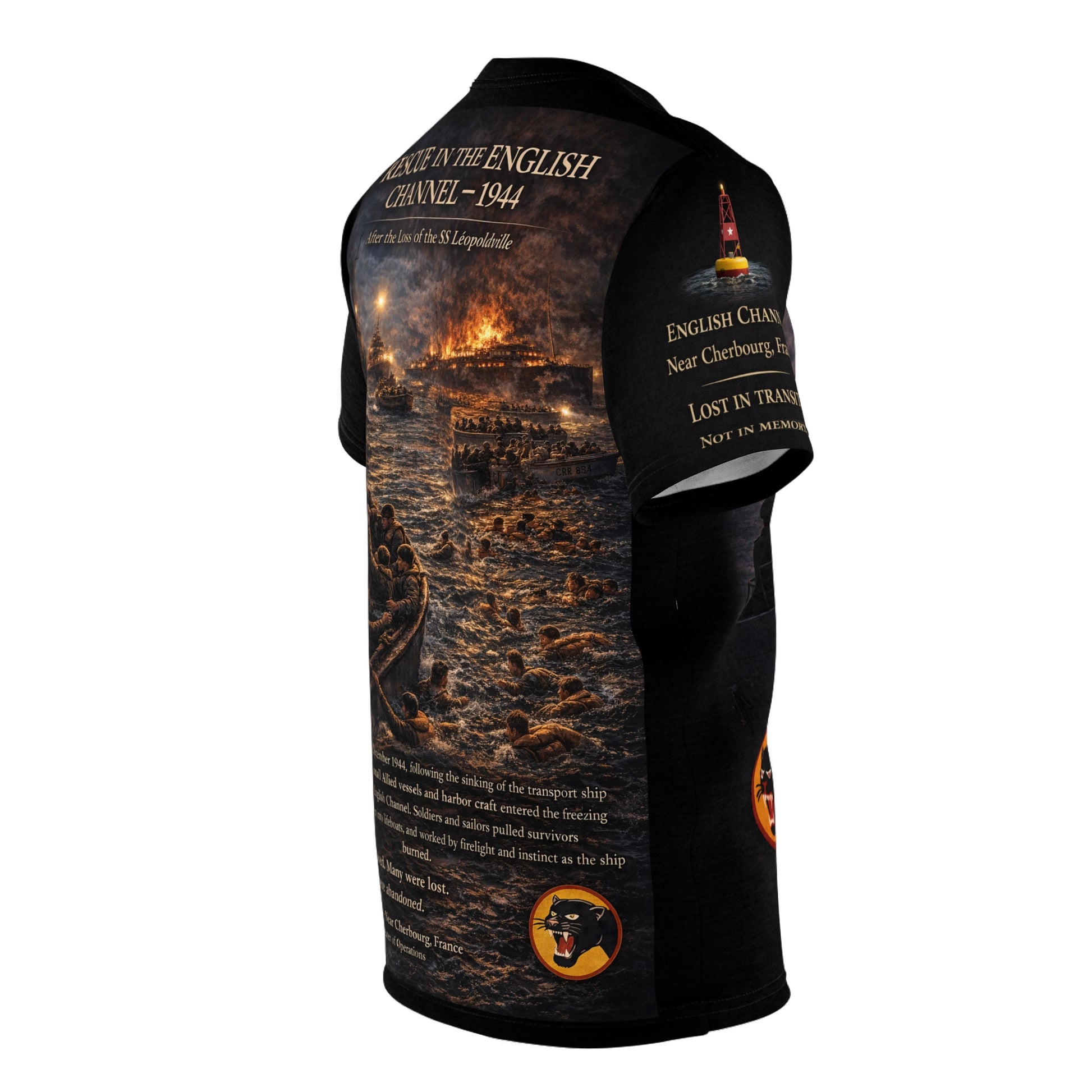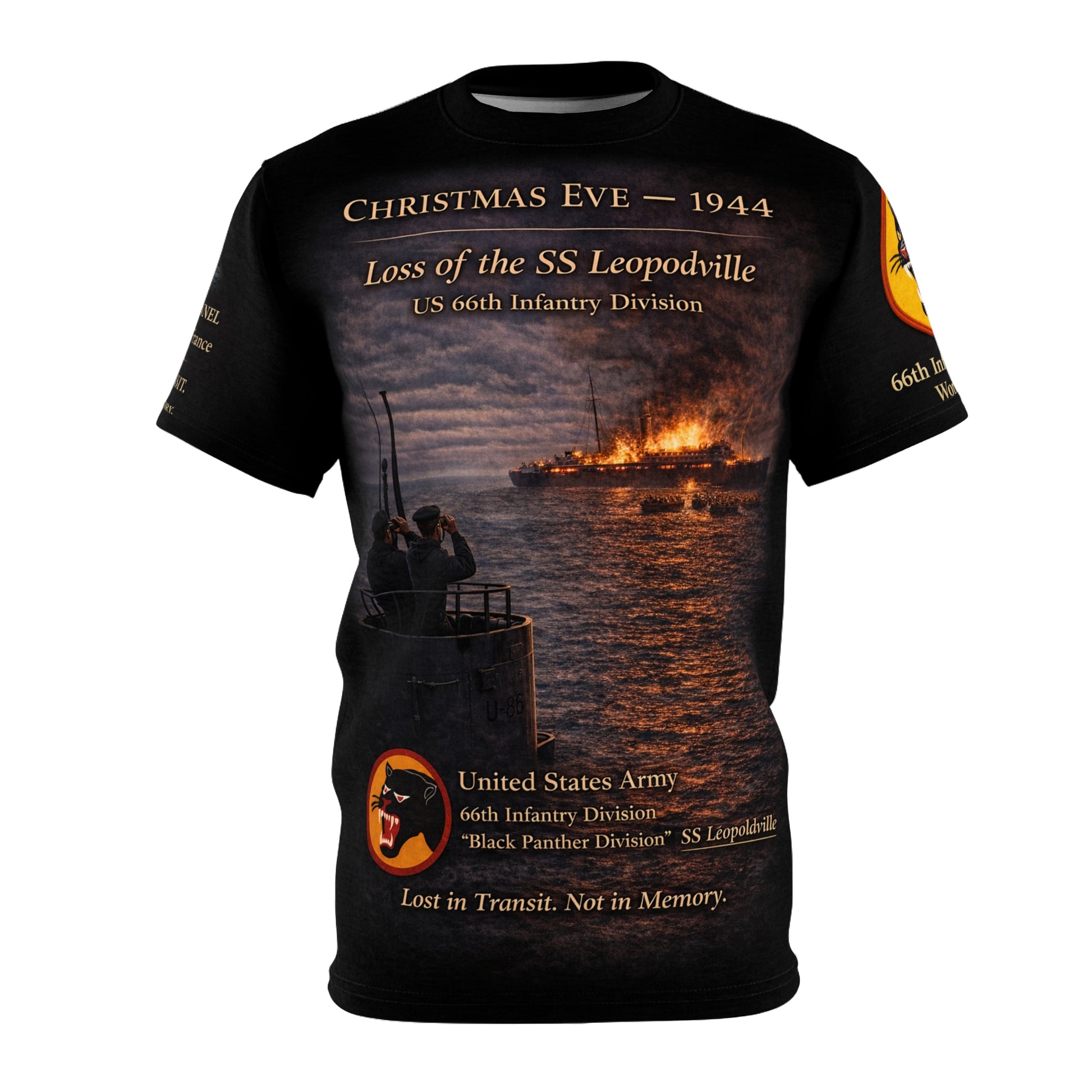 This tee honors the 66th Infantry Division — the Black Panther Division — with a sober, cinematic tribute to a rescue at sea after an enemy submarine attack. The shirt carries a quiet intensity: dark, bold graphics that echo maritime danger and the grit of wartime rescue.