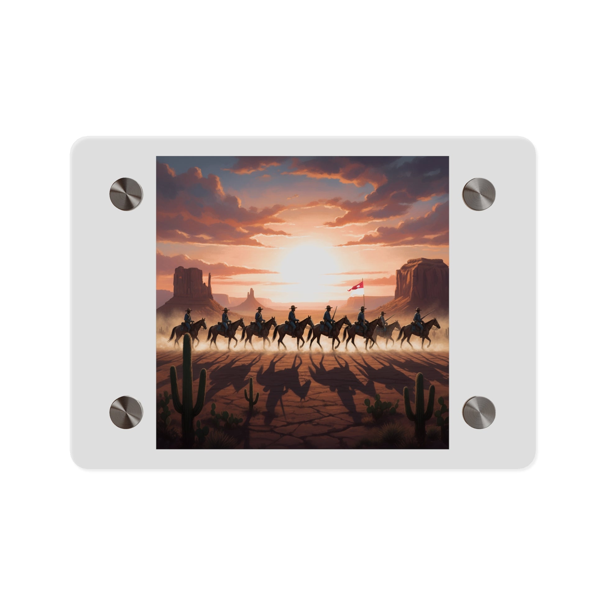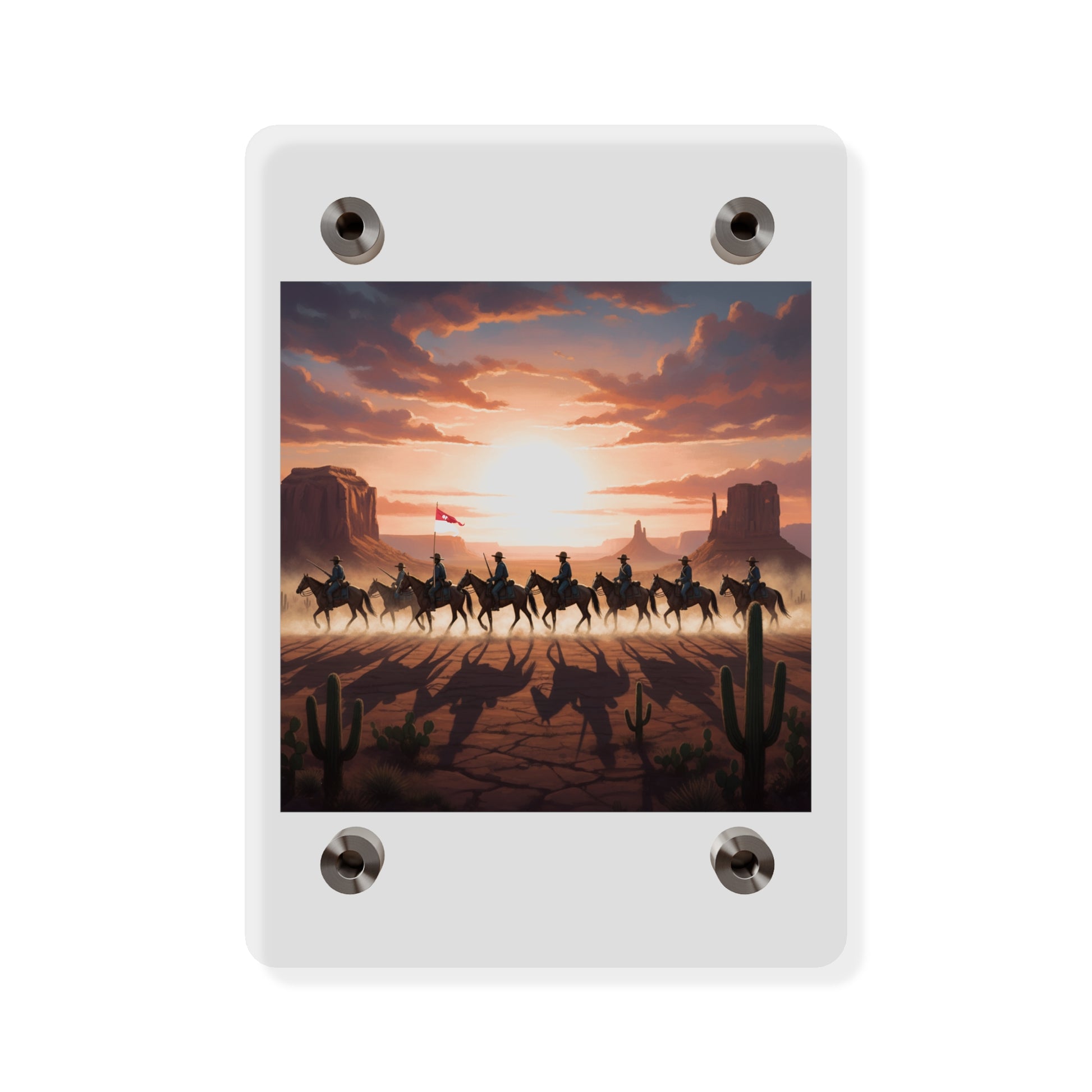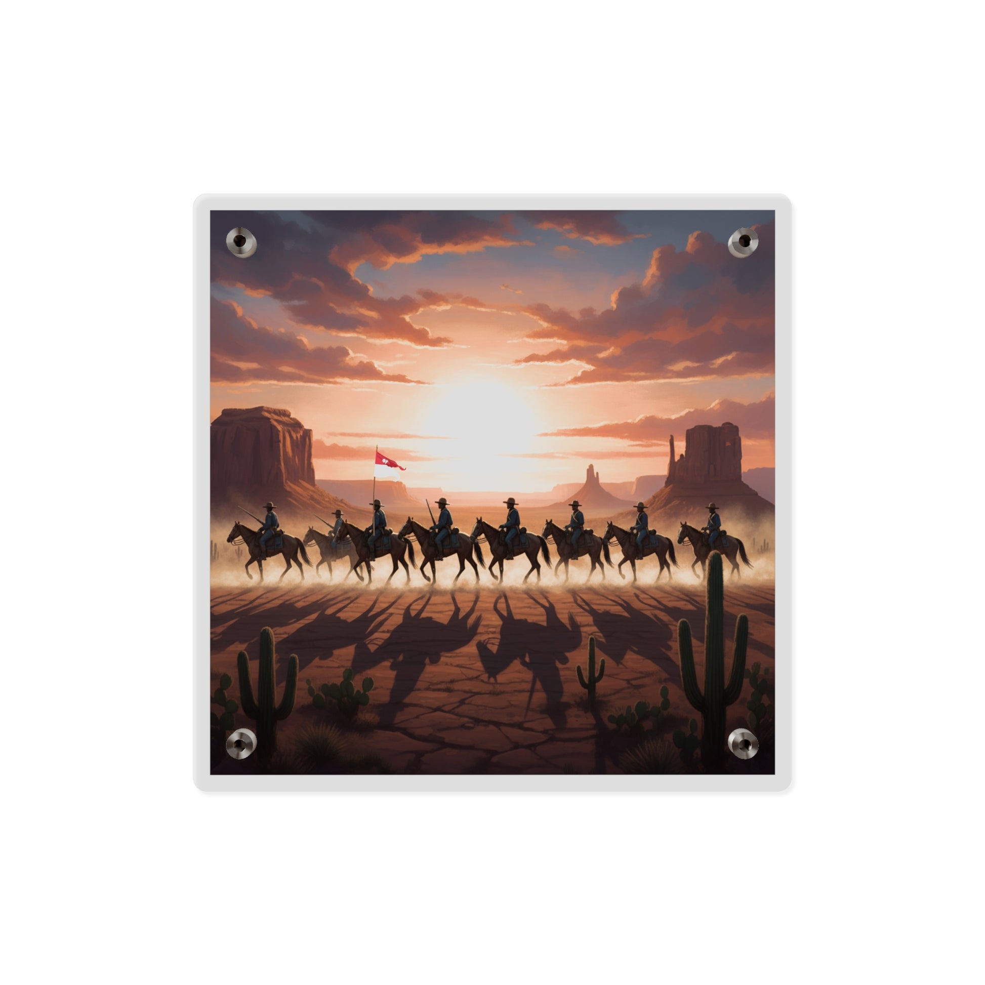 Acrylic Wall Art Panel - 10th Cavalry on Patrol in the sunset w 10th Cav Guidon
