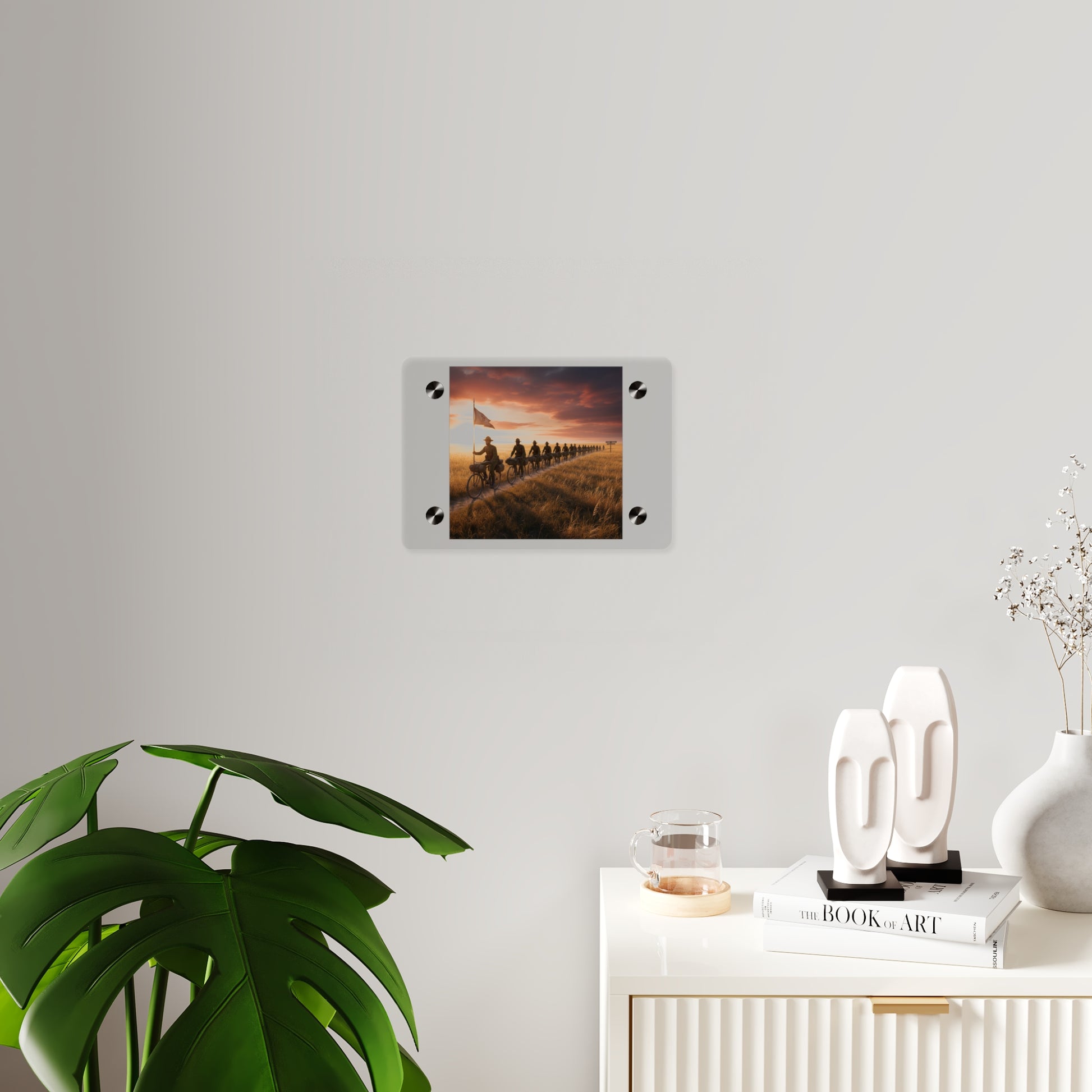 Acrylic Wall Art Panel - E Company 25th Infantry Buffalo Soldiers Bicycle Corps with Guidon on the Prairie at Sunset