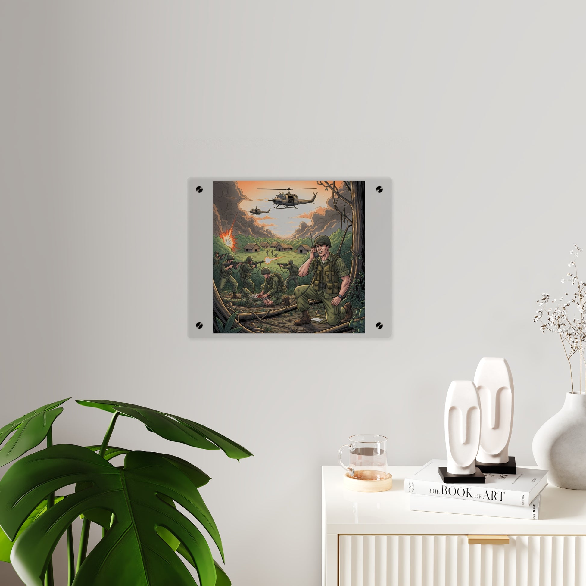 Acrylic Wall Art Panel - Vietnam Patrol Fire Fight Requesting Medevac