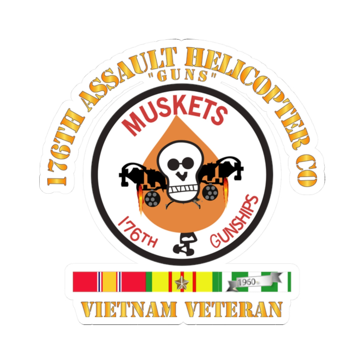 Kiss-Cut Stickers - 176th Gunships (Muskets) - Guns - Vietnam Vet w SVC