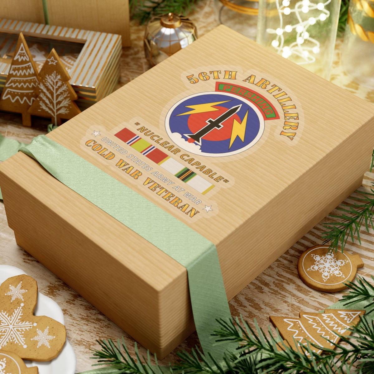 The 56th Artillery - Pershing - Nuclear Capable with Cold Service Medals refers to the 56th Field Artillery Regiment, which was equipped with Pershing missiles during the Cold War. These were nuclear-capable, medium-range ballistic missiles designed for strategic deterrence and military use. The Cold Service Medals indicate that the unit served during the Cold War period, a time of heightened tensions between the U.S. and the Soviet Union. The combination of Pershing missiles and the Cold Service Medals highlights the regiment's involvement in nuclear deterrence and its role in the defense strategy during the Cold War.
