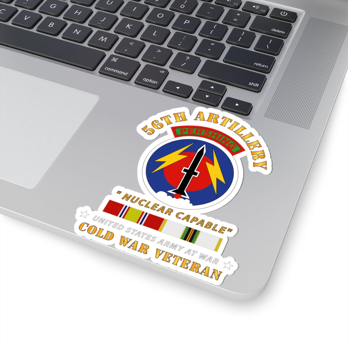 Kiss-Cut Stickers - 56th Artillery - Pershing - Nuclear Capable w COLD Svc Medals