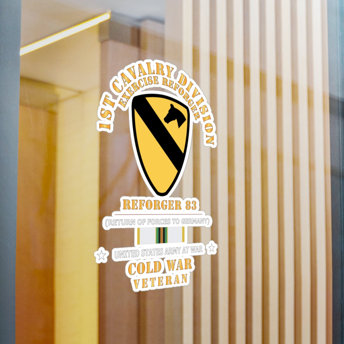Kiss-Cut Vinyl Decals - Army - 1st Cavalry Division - SSI -Reforger 83 - COLD WAR Veteran w SVC X 300