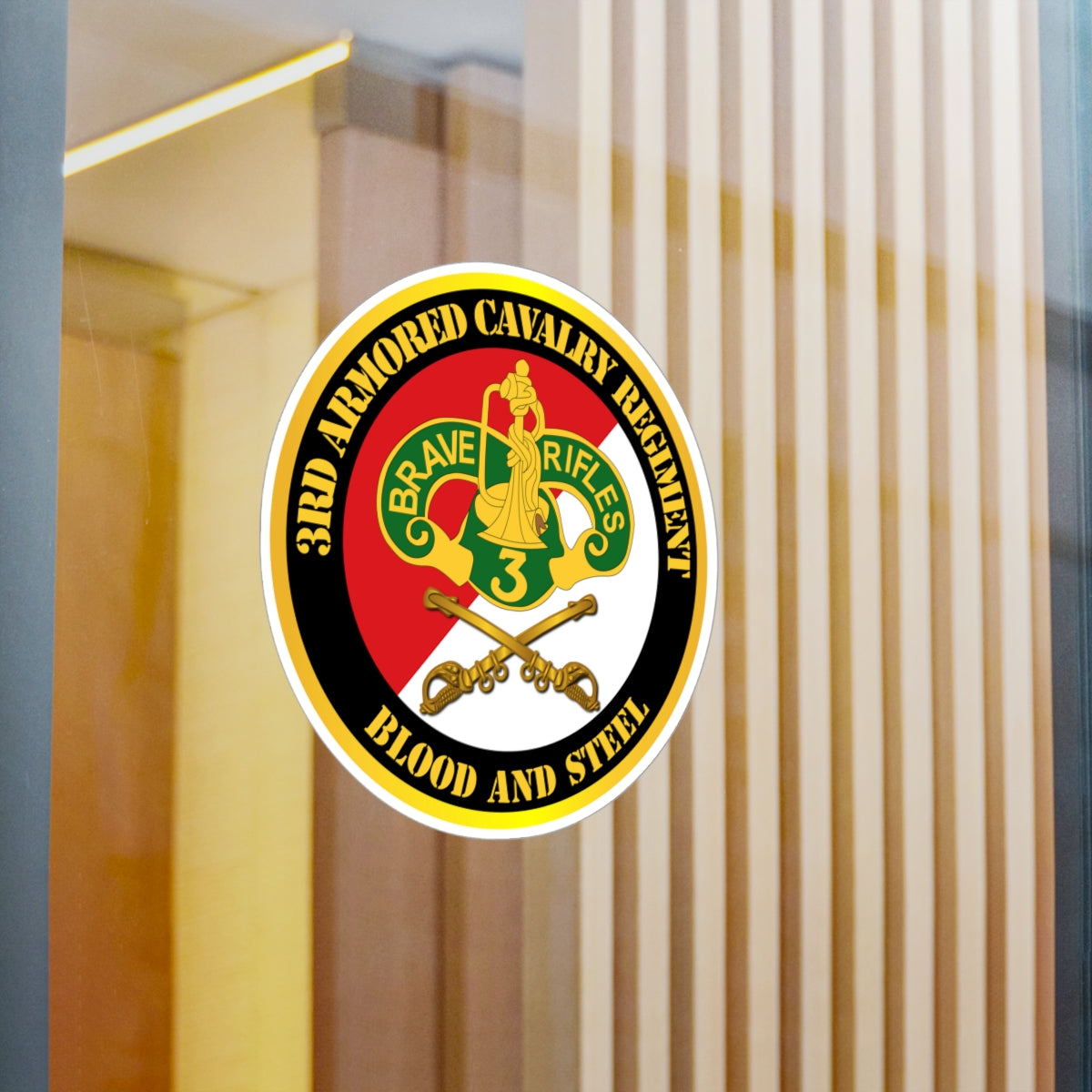 Kiss-Cut Vinyl Decals - Army - 3rd Armored Cavalry Regiment DUI - Red White - Blood and Steel