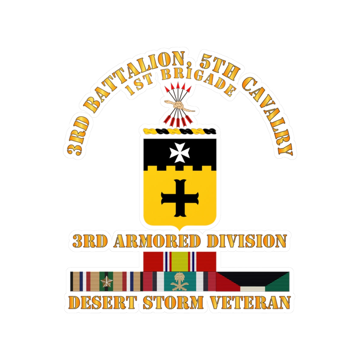 Kiss-Cut Vinyl Decals - Army - 3rd Bn, 5th Cavalry - 3rd Armored Div - Desert Storm Veteran