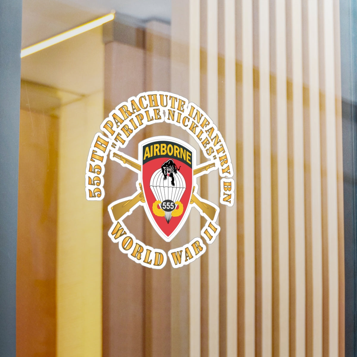 Kiss-Cut Vinyl Decals - Army - 555th Infantry Parachute Bn SSI - Triple Nickles - WWII w Br X 300
