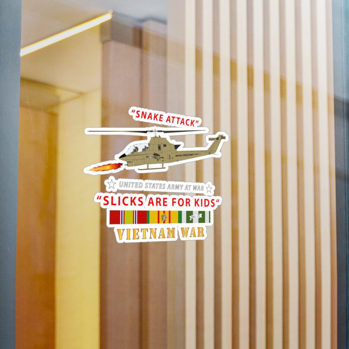 Kiss-Cut Vinyl Decals - Army - AH-1 Cobra - Snake Attack - Slicks are for Kids w VN SVC