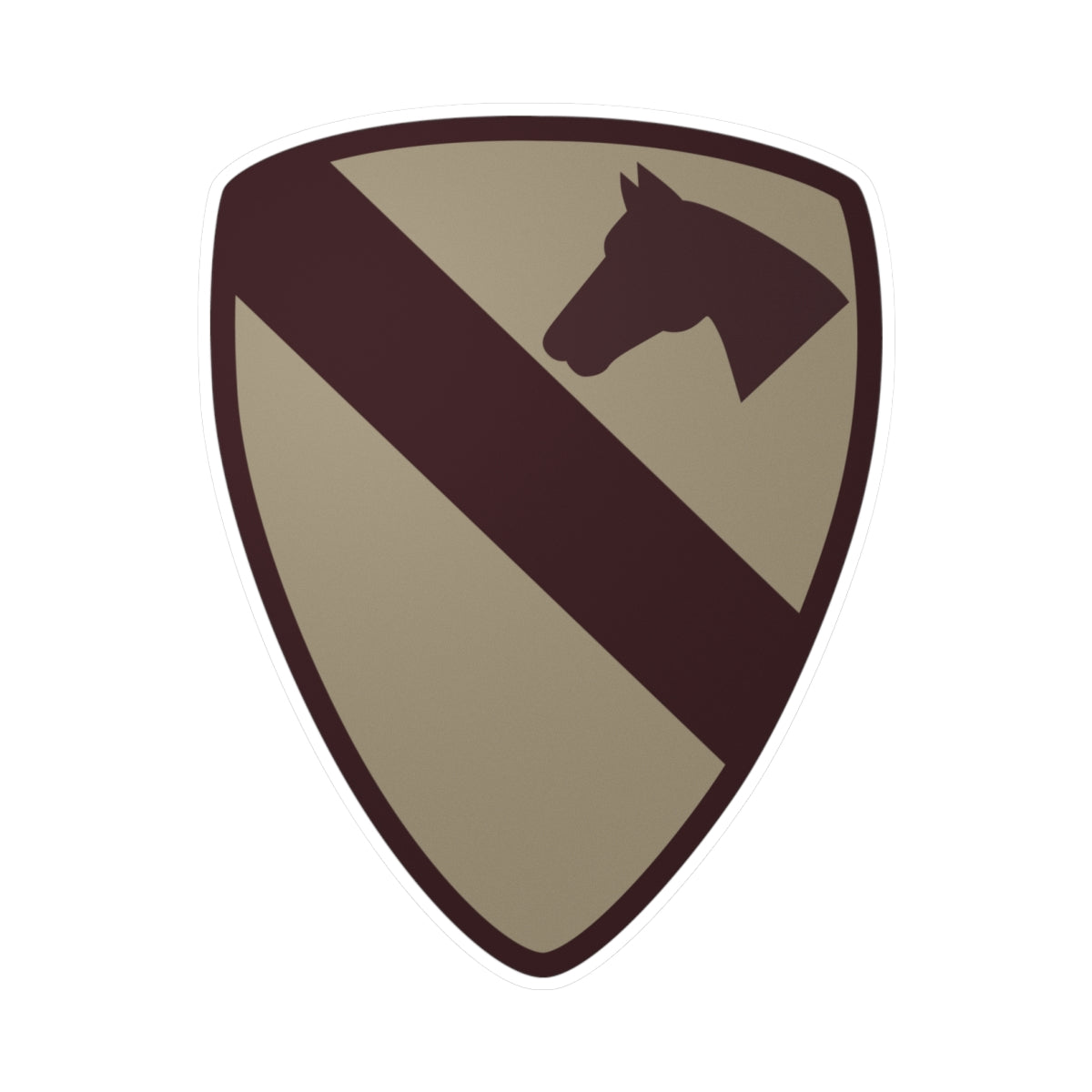 The 1st Cavalry Division – Subdued Desert patch features the division’s famous shield with a diagonal stripe and horse’s head, designed in tan and brown tones for wear on desert combat uniforms.