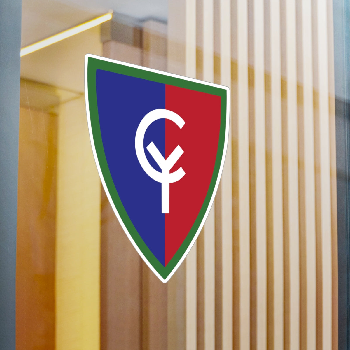 38th Infantry Division features a blue “CY” monogram on a red background, symbolizing the division’s nickname, the “Cyclone Division.” Formed during World War I and composed mainly of National Guard units from the Midwest, the division earned distinction in World War II’s Pacific campaigns, representing strength, resilience, and unity under pressure.